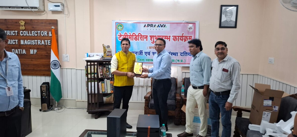 दतिया @Medicalsansarnews.com/ Datia>>>>>>>>>>>>>> संवेदनशील व नवाचारी कलेक्टर श्री स्वप्निल वानखेड़े के निर्देशन व अभिनव, अनूठी पहल के तहत जिला स्वास्थ्य समिति के तत्वावधान में अप्रावा एनर्जी (Apraava Energy)एवं स्वदेश ग्रामोत्थान समिति के सहयोग से जिले में स्वास्थ्य सेवाओं को सुदृढ़ बनाने हेतु टेलीमेडिसिन परियोजना का शुभारंभ व कम्प्यूटर सामग्री सुपुर्दगी कलेक्टर बंगला के सभागार में किया गया।